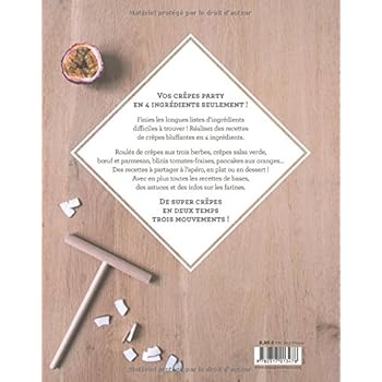 Crêpes party en 4 ingrédients Friday, January 17, 2020 Edit Category: Livres,Cuisine et Vins,DessertsCrêpes party en 4 ingrédients DetailsDes crêpes sucrées et salées originales en 4 ingrédients seulement pour twister les grands classiques ! ReviewsLivre très intéressantBcp de recettes Share this post